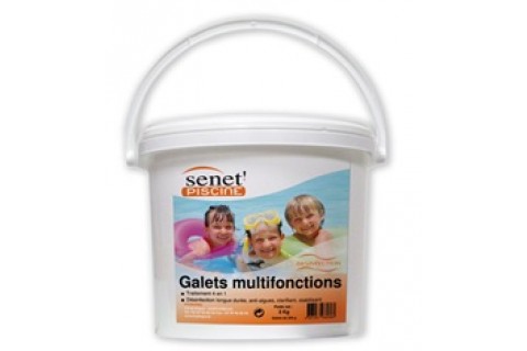Dosage : 1 galet de CHLORE MULTIFONCTIONS pour 15 à 20m3 tous les 6 jours dans le skimmer ou dans le diffuseur filtration en marche.